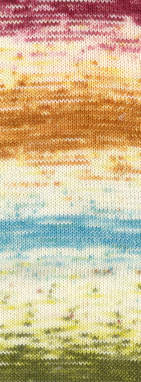 Lana Grossa Meilenweit 100 Dusk 6202 Lachsorange/Ecru/Erika-/Dunkelrot/Zartgelb/Karamell/Nougat