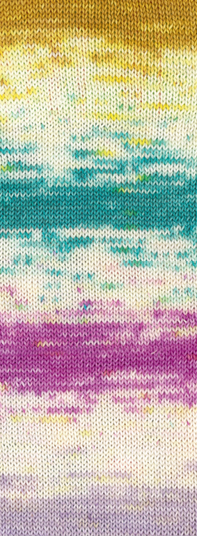 Lana Grossa Meilenweit 100 Dusk 6207 Dunkelviolett/Ecru/Gelb/Ockerbraun/Türkis/Seegrün/Orchidee