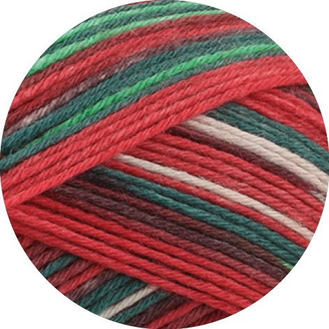 Produktinformationen "Lana Grossa Meilenweit 6-f 150 Merino Christmas 632 Grün/Dunkelrot/Rot/Weiß"