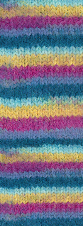 Produktinformationen "Lana Grossa Cosy Socks Multi Stripes 155 Dunkelpetrol/Helltürkis/Gelb/Orchidee/Grauviolett 100g"