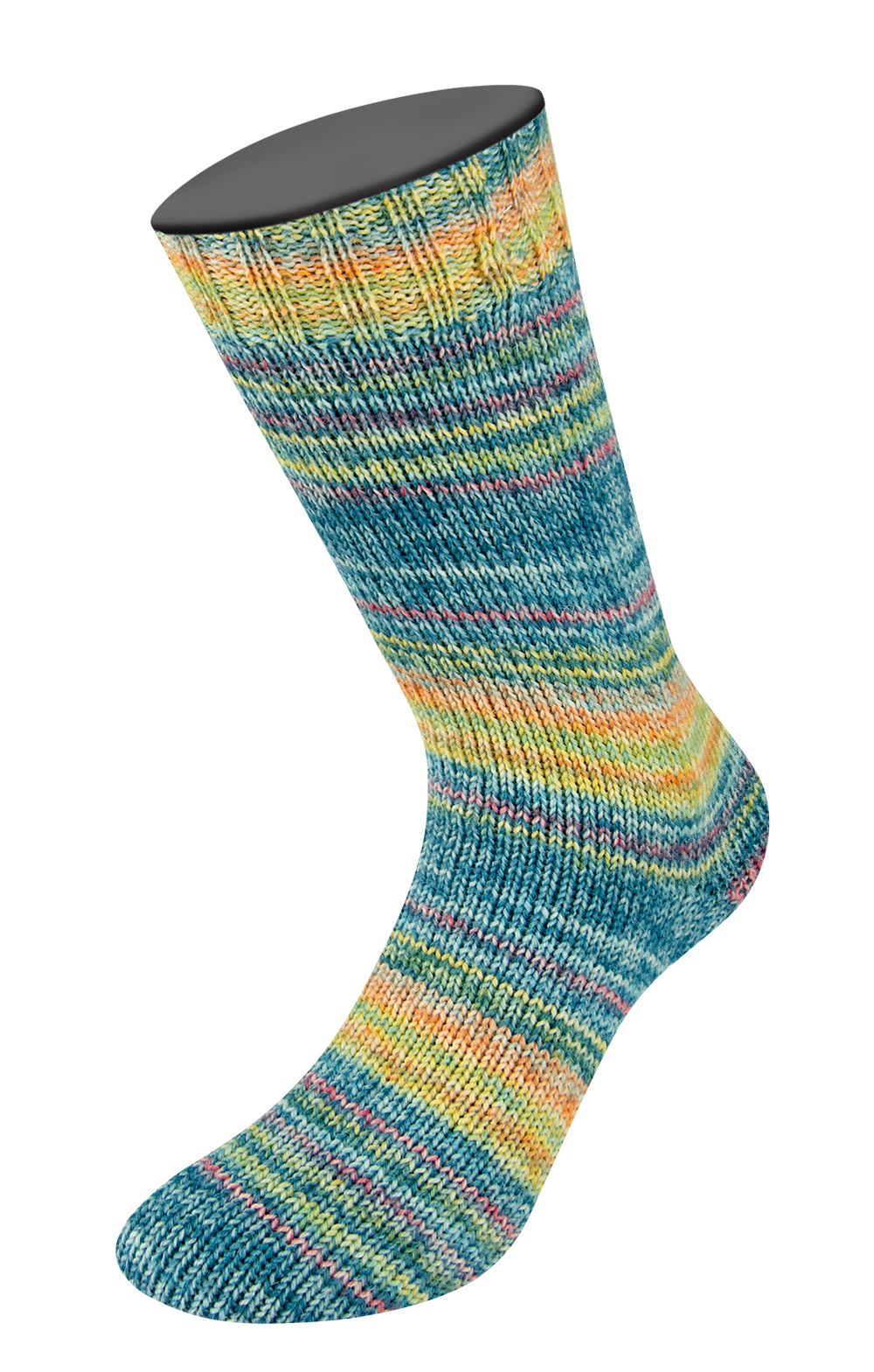 Produktinformationen "Lana Grossa landlust die Sockenwolle 6-fach 914 Dunkelpetrol/Weiß/Gelb/Linde/Orange/Rot 150g"